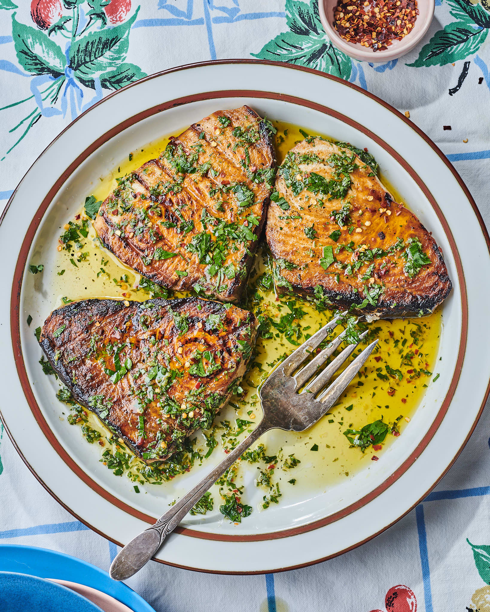 Pour the dressing over the fish evenly how to cook swordfish. Make the fresh tomato salad: